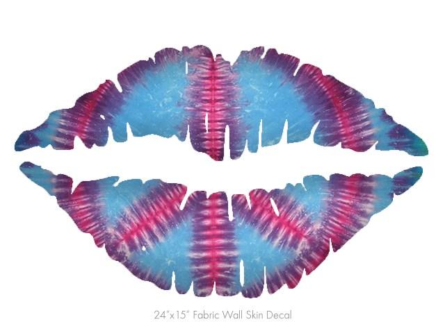 Tie Dye Peace Sign 100 - Kissing Lips Fabric Wall Skin Decal measures 24x15 inches