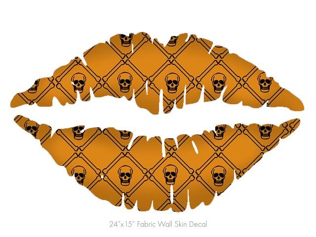 Halloween Skull and Bones - Kissing Lips Fabric Wall Skin Decal measures 24x15 inches