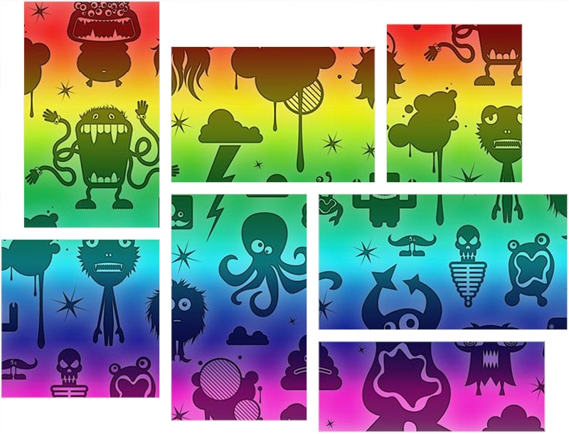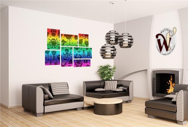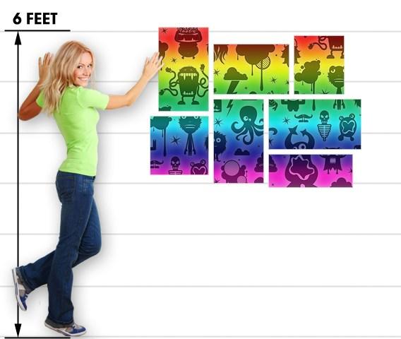 Cute Rainbow Monsters - 7 Piece Fabric Peel and Stick Wall Skin Art (50x38 inches)