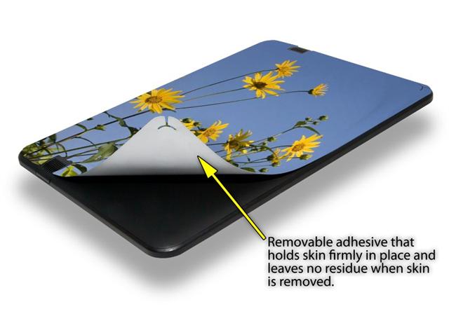 uSkins™ are self adhering vinyl skins that help prevent scratches and look great doing it. Unlike bulky silicon, plastic or metal cases and faceplates, uSkins are designed to be thin and very tough. uSkins are a composite of two layers of commercial grade materials. The bottom layer is a soft, flexible vinyl with a special removable adhesive that is easily positioned, applied without air bubbles, and effortlessly removed without leaving a sticky residue. Next we print the bottom layer with UV protected, fade resistant inks that deliver superb photo quality designs in vibrant colors. Finally we bond a professional grade laminate over the entire skin adding a glossy protective finish.