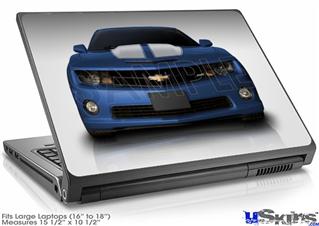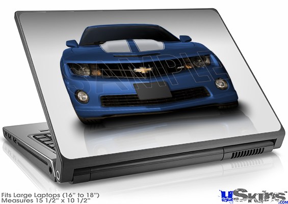Laptop Skin (Large) - 2010 Chevy Camaro Aqua - White Stripes