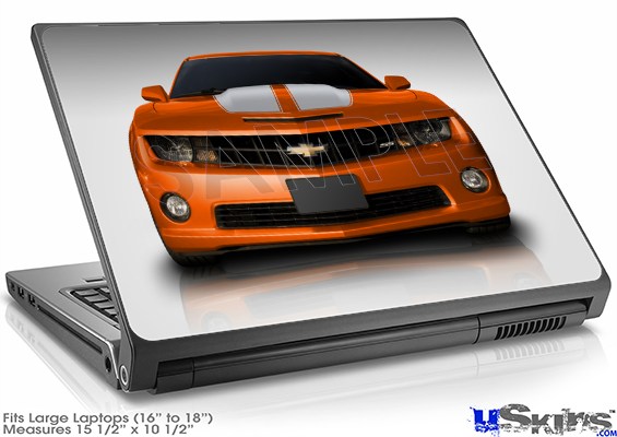 Laptop Skin (Large) - 2010 Chevy Camaro Orange - White Stripes