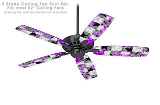 Purple Checker Skull Splatter - Ceiling Fan Skin Kit fits most 52 inch fans (FAN and BLADES SOLD SEPARATELY)