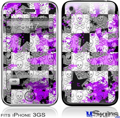 iPhone 3GS Skin - Purple Checker Skull Splatter
