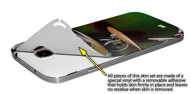 • Decal style vinyl skin covers front and back of Samsung Galaxy S4 phone.