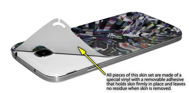 • Decal style vinyl skin covers front and back of Samsung Galaxy S4 phone.