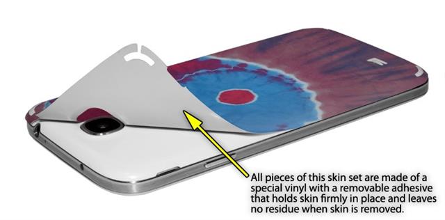 • Decal style vinyl skin covers front and back of Samsung Galaxy S4 phone.