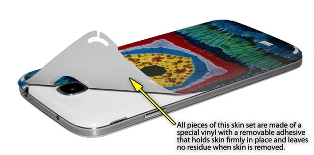 • Decal style vinyl skin covers front and back of Samsung Galaxy S4 phone.