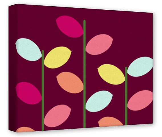Gallery Wrapped 11x14x1.5 Canvas Art - Plain Leaves On Burgundy