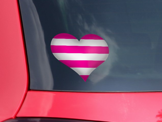 Psycho Stripes Hot Pink and White - I Heart Love Car Window Decal 6.5 x 5.5 inches