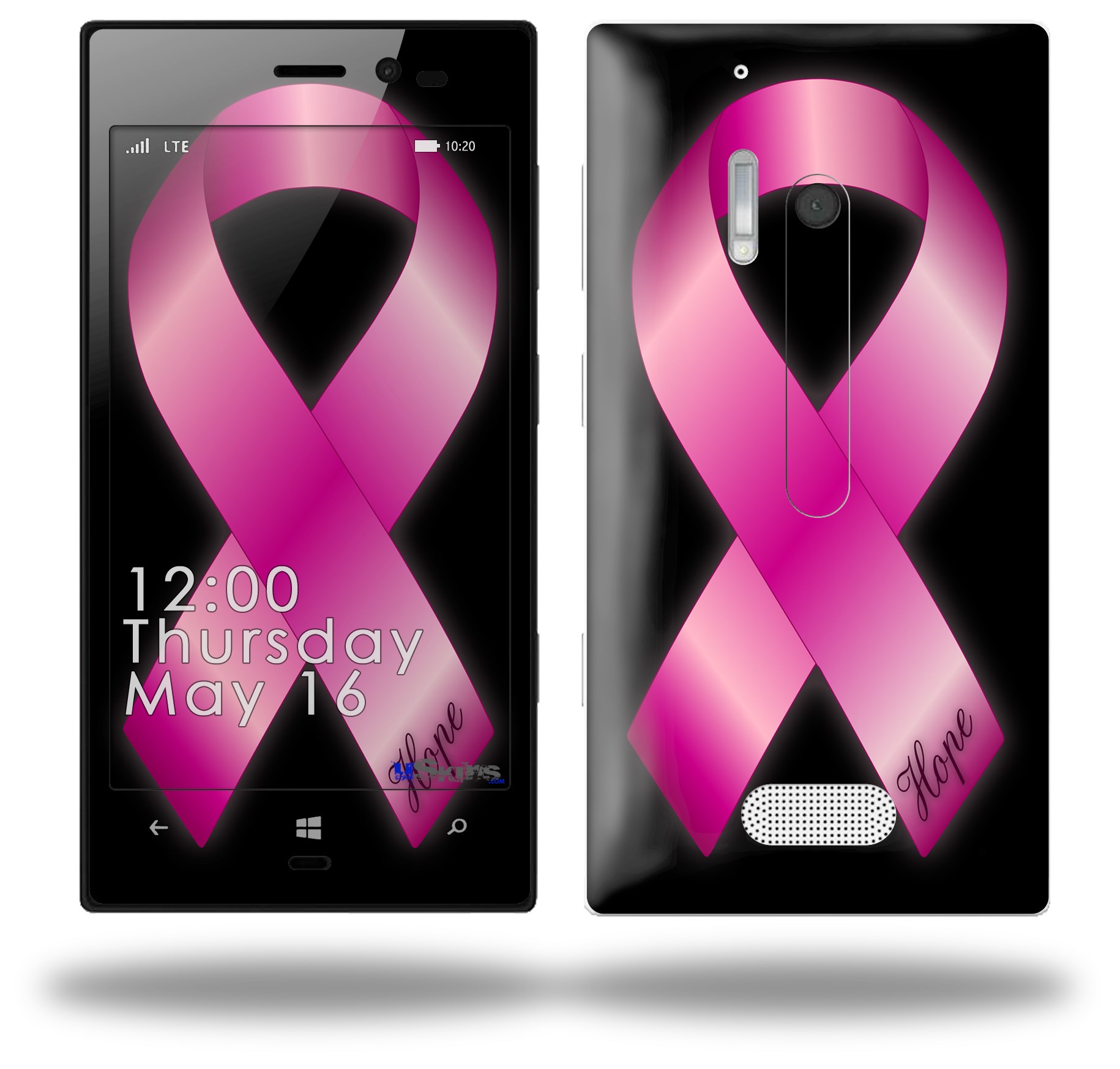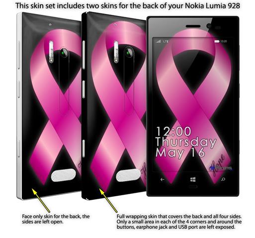 Hope Breast Cancer Pink Ribbon on Black - Decal Style Skin (fits Nokia Lumia 928)