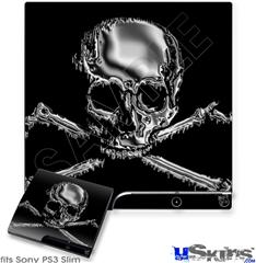 Decal Skin compatible with Sony PS3 Slim Chrome Skull on Black