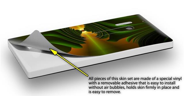 • Decal style vinyl skin covers front, back and side of Nokia Lumia 928 phone.
