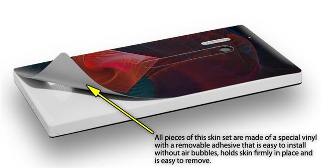 • Decal style vinyl skin covers front, back and side of Nokia Lumia 928 phone.