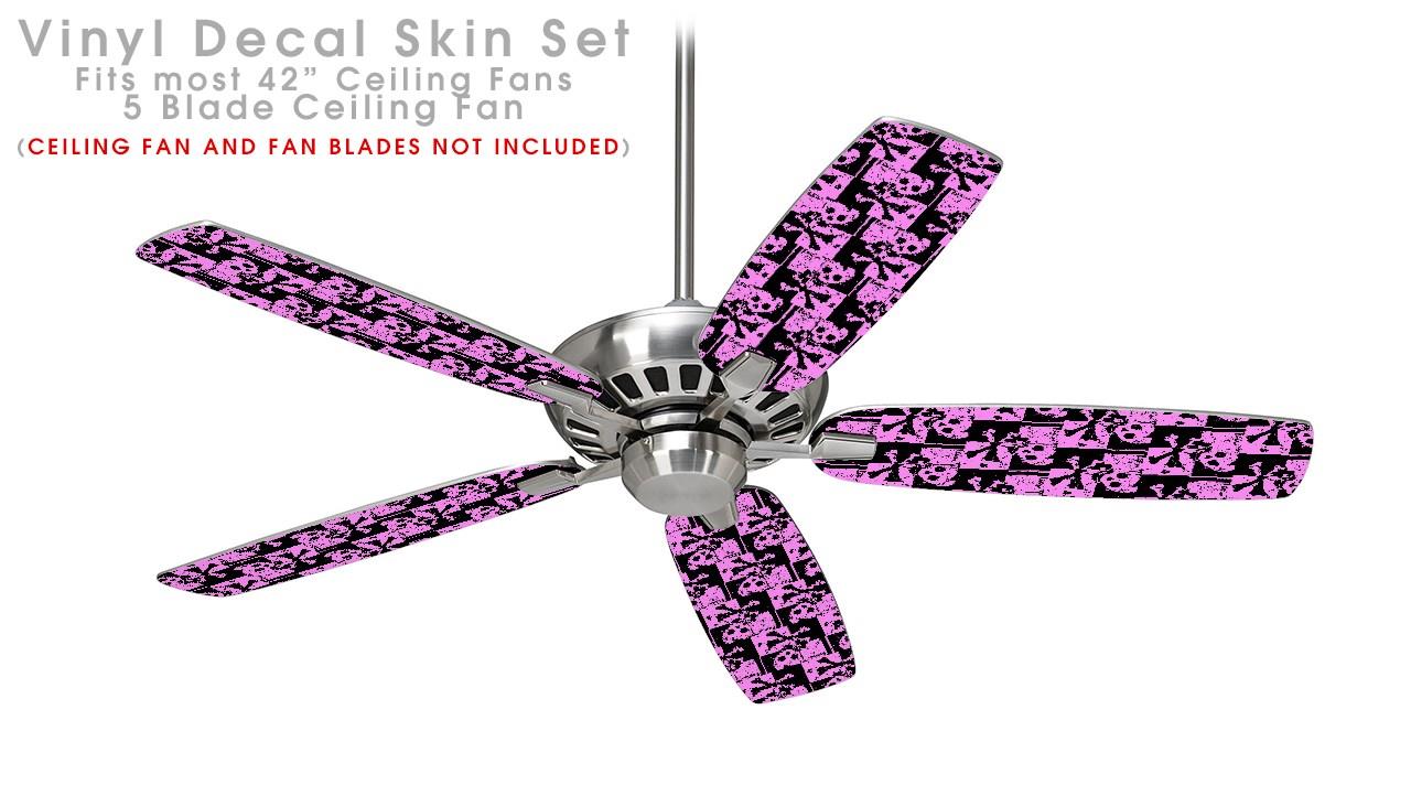 Skull Checker Pink - Ceiling Fan Skin Kit fits most 42 inch fans (FAN and BLADES SOLD SEPARATELY)