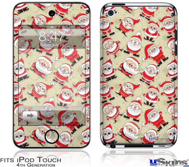 iPod Touch 4G Decal Style Vinyl Skin - Lots of Santas