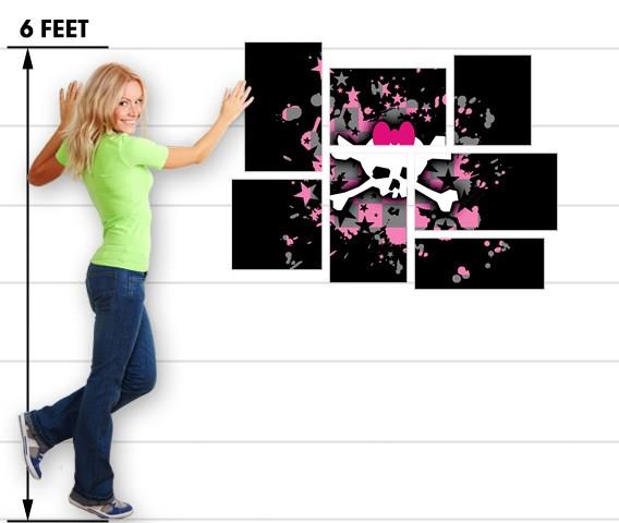 Scene Skull Splatter - 7 Piece Fabric Peel and Stick Wall Skin Art (50x38 inches)