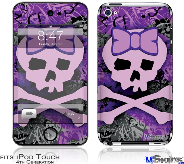 iPod Touch 4G Decal Style Vinyl Skin - Purple Girly Skull