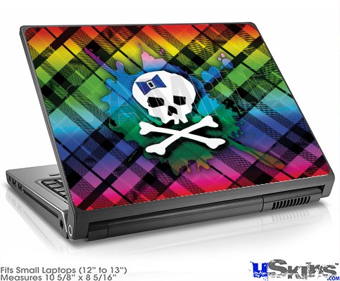 Laptop Skin (Small) - Rainbow Plaid Skull