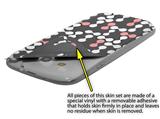 uSkins™ are self adhering vinyl skins that help prevent scratches and look great doing it. Unlike bulky silicon, plastic or metal cases and faceplates, uSkins are designed to be thin and very tough. uSkins are a composite of two layers of commercial grade materials. The bottom layer is a soft, flexible vinyl with a special removable adhesive that is easily positioned, applied without air bubbles, and effortlessly removed without leaving a sticky residue. Next we print the bottom layer with UV protected, fade resistant inks that deliver superb photo quality designs in vibrant colors. Finally we bond a professional grade laminate over the entire skin adding a glossy protective finish.