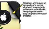 uSkins™ are self adhering vinyl decal style skins and are a great way to add a new look to your protective case. uSkins are a composite of two layers of commercial grade materials. The bottom layer is a soft, flexible vinyl with a special removable adhesive that is easily positioned, applied without air bubbles. Next we print the bottom layer with UV protected, fade resistant inks that deliver superb photo quality designs in vibrant colors. Finally we bond a professional grade laminate over the entire skin adding a glossy protective finish.