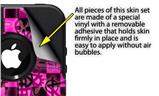 uSkins™ are self adhering vinyl decal style skins and are a great way to add a new look to your protective case. uSkins are a composite of two layers of commercial grade materials. The bottom layer is a soft, flexible vinyl with a special removable adhesive that is easily positioned, applied without air bubbles. Next we print the bottom layer with UV protected, fade resistant inks that deliver superb photo quality designs in vibrant colors. Finally we bond a professional grade laminate over the entire skin adding a glossy protective finish.
