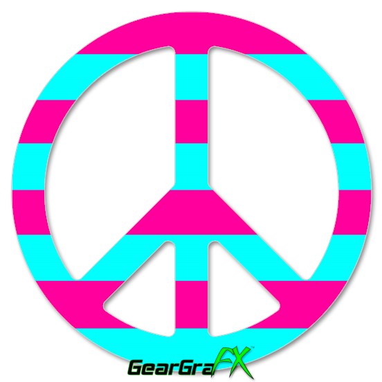 Psycho Stripes Neon Teal and Hot Pink - Peace Sign Car Window Decal 6 x 6 inches