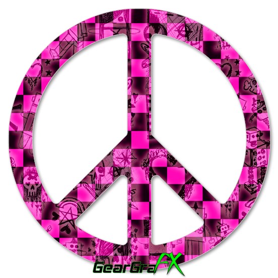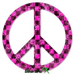 Pink Checkerboard Sketches - Peace Sign Car Window Decal 6 x 6 inches