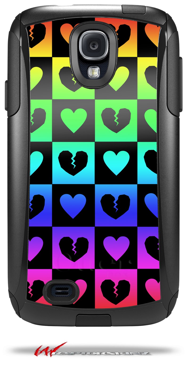 Love Heart Checkers Rainbow - Decal Style Vinyl Skin fits Otterbox Commuter Case for Samsung Galaxy S4 (CASE SOLD SEPARATELY)