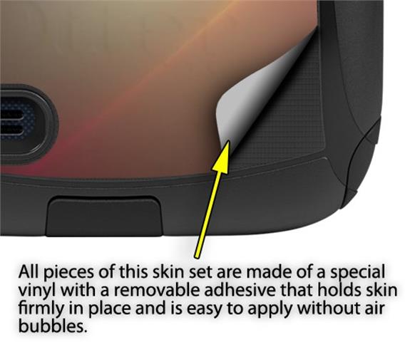 uSkins™ are self adhering vinyl decal style skins and are a great way to add a new look to your protective case. uSkins are a composite of two layers of commercial grade materials. The bottom layer is a soft, flexible vinyl with a special removable adhesive that is easily positioned, applied without air bubbles. Next we print the bottom layer with UV protected, fade resistant inks that deliver superb photo quality designs in vibrant colors. Finally we bond a professional grade laminate over the entire skin adding a glossy protective finish.