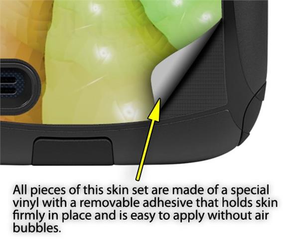 uSkins™ are self adhering vinyl decal style skins and are a great way to add a new look to your protective case. uSkins are a composite of two layers of commercial grade materials. The bottom layer is a soft, flexible vinyl with a special removable adhesive that is easily positioned, applied without air bubbles. Next we print the bottom layer with UV protected, fade resistant inks that deliver superb photo quality designs in vibrant colors. Finally we bond a professional grade laminate over the entire skin adding a glossy protective finish.