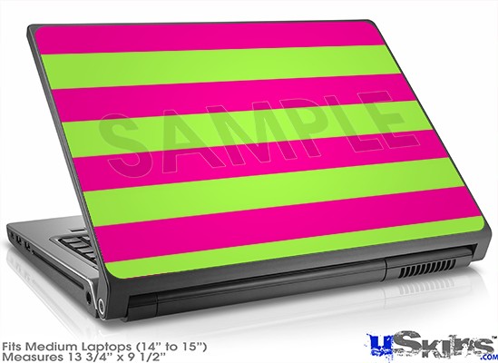 Laptop Skin (Medium) - Psycho Stripes Neon Green and Hot Pink