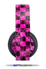 Vinyl Decal Skin Wrap compatible with Original Sony PlayStation 4 Gold Wireless Headphones Pink Checkerboard Sketches (PS4 HEADPHONES NOT INCLUDED)