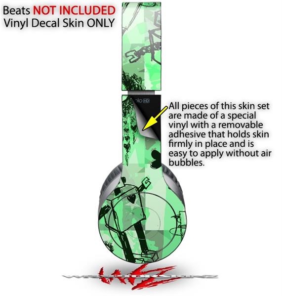 WraptorSkinz Skin Decal Wrap compatible with Beats Solo HD (Original) Scene Kid Sketches Green (HEADPHONES NOT INCLUDED)