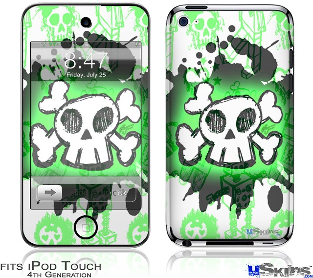 iPod Touch 4G Decal Style Vinyl Skin - Cartoon Skull Green