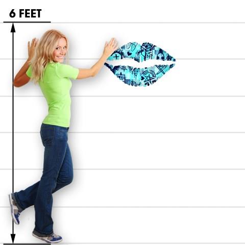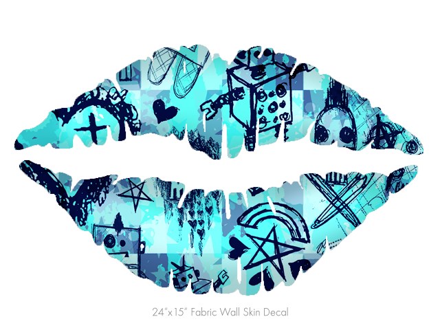 Scene Kid Sketches Blue - Kissing Lips Fabric Wall Skin Decal measures 24x15 inches