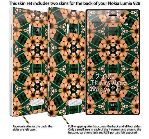 • Decal style vinyl skin covers front, back and side of Nokia Lumia 928 phone.