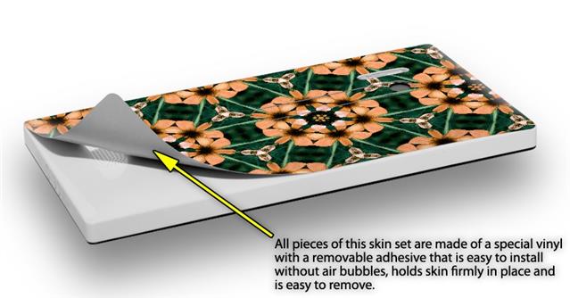 uSkins™ are self adhering vinyl skins that help prevent scratches and look great doing it. Unlike bulky silicon, plastic or metal cases and faceplates, uSkins are designed to be thin and very tough. uSkins are a composite of two layers of commercial grade materials. The bottom layer is a soft, flexible vinyl with a special removable adhesive that is easily positioned, applied without air bubbles, and effortlessly removed without leaving a sticky residue. Next we print the bottom layer with UV protected, fade resistant inks that deliver superb photo quality designs in vibrant colors. Finally we bond a professional grade laminate over the entire skin adding a glossy protective finish.