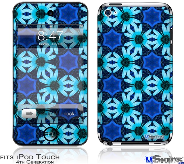 iPod Touch 4G Decal Style Vinyl Skin - Daisies Blue