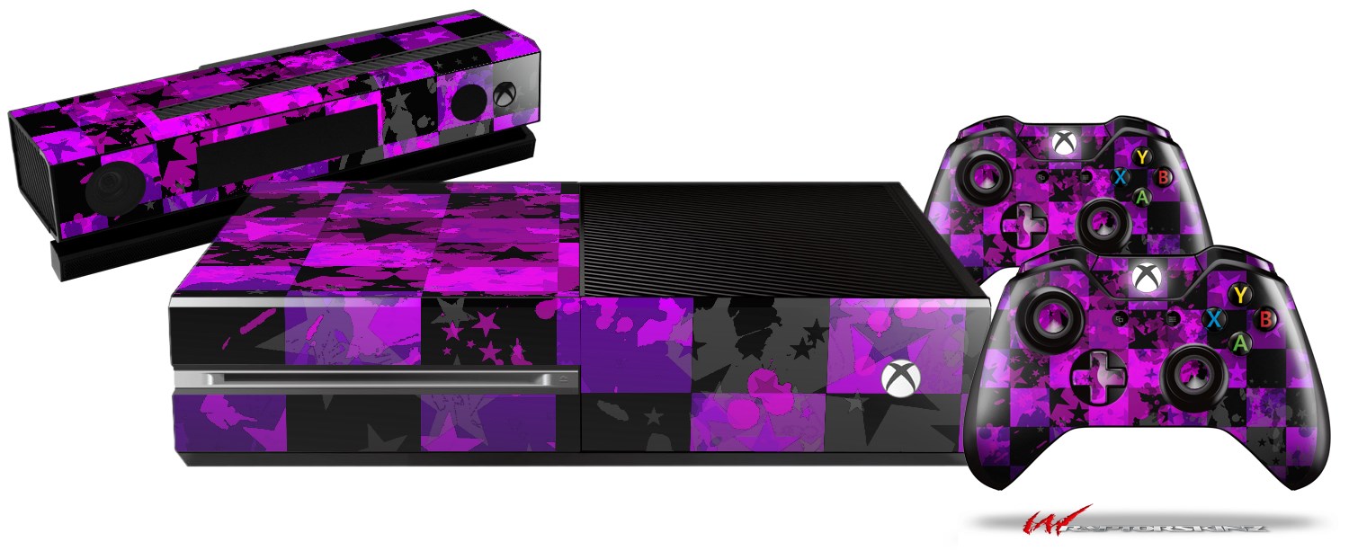 Purple Star Checkerboard - Holiday Bundle Decal Style Skin fits XBOX One Console Original, Kinect and 2 Controllers (XBOX SYSTEM NOT INCLUDED)