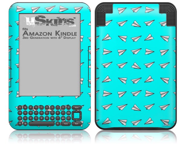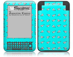 Paper Planes Neon Teal - Decal Style Skin fits Amazon Kindle 3 Keyboard (with 6 inch display)