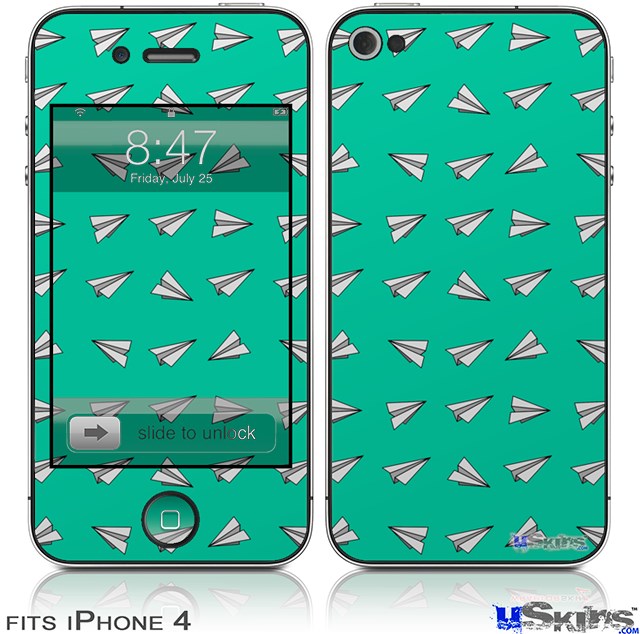 iPhone 4 Decal Style Vinyl Skin - Paper Planes Turquoise (DOES NOT fit newer iPhone 4S)