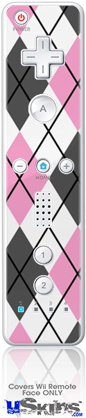 Wii Remote Controller Face ONLY Skin - Argyle Pink and Gray