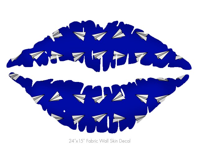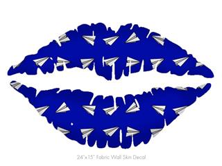 Paper Planes Royal Blue - Kissing Lips Fabric Wall Skin Decal measures 24x15 inches