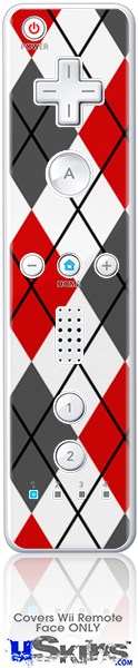 Wii Remote Controller Face ONLY Skin - Argyle Red and Gray
