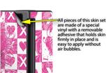 WraptoSkinz™ skins are superb photo quality designs and vibrant colors printed with special Eco-Friendly, fade resistant inks. Our skins are self-adhering flexible vinyl skins that helps prevent scratches. Made of composite, multi-layered commercial grade materials. The bottom layer is made with a special removable adhesive that is easily positioned and applied without air bubbles. We print your design on the bottom layer then bond a professional grade laminate over the entire skin adding a glossy protective finish.