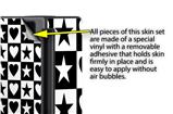 WraptoSkinz™ skins are superb photo quality designs and vibrant colors printed with special Eco-Friendly, fade resistant inks. Our skins are self-adhering flexible vinyl skins that helps prevent scratches. Made of composite, multi-layered commercial grade materials. The bottom layer is made with a special removable adhesive that is easily positioned and applied without air bubbles. We print your design on the bottom layer then bond a professional grade laminate over the entire skin adding a glossy protective finish.