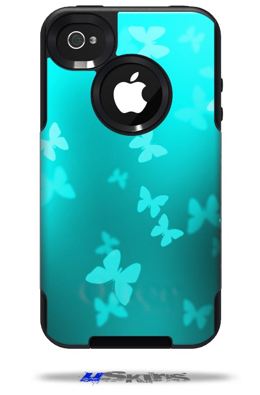 Bokeh Butterflies Neon Teal - Decal Style Vinyl Skin fits Otterbox Commuter iPhone4/4s Case (CASE SOLD SEPARATELY)