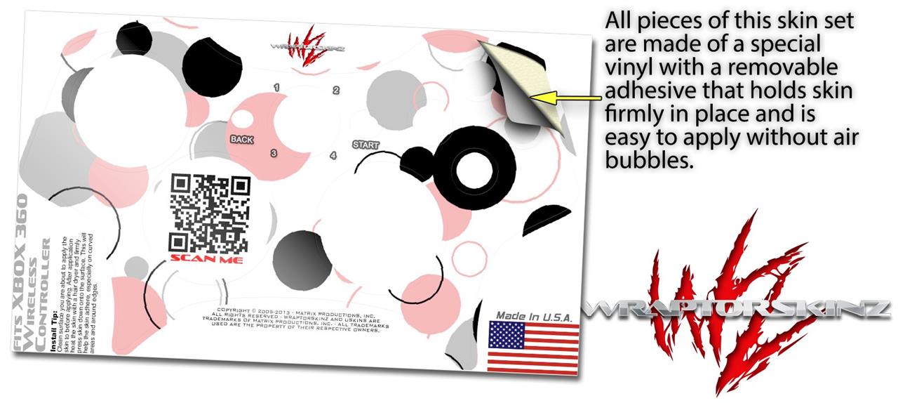 XBOX 360 Wireless Controller Decal Style Skin - Lots of Dots Pink on White (CONTROLLER NOT INCLUDED)