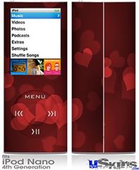 iPod Nano 4G Skin - Bokeh Hearts Red